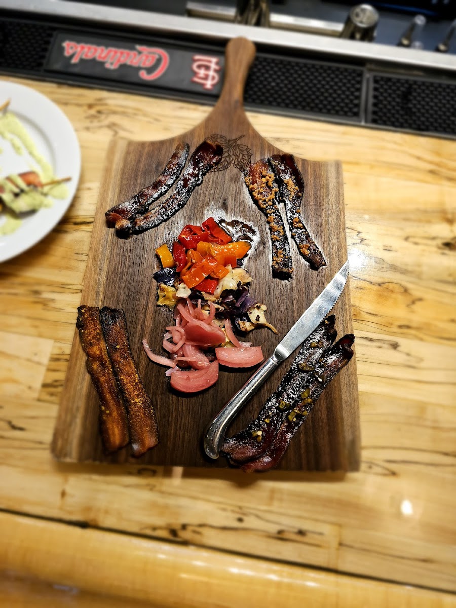 One of the standout features of The Busted Cup Brewhouse is its creative menu that caters to a variety of tastes. The German Beer Flight is a must-try for anyone who loves to sample different brews, offering a delightful selection that pairs perfectly with the other dishes on the menu. For those who prefer something a bit heartier, the Sausage Flight is another crowd favorite. It features a selection of sausages that are perfectly grilled and packed with flavor. And if you're a fan of bacon, don’t miss out on the House Cured Bacon Flight. It’s a bacon lover’s dream, with each bite offering a rich, smoky flavor that adds a savory twist to any meal.