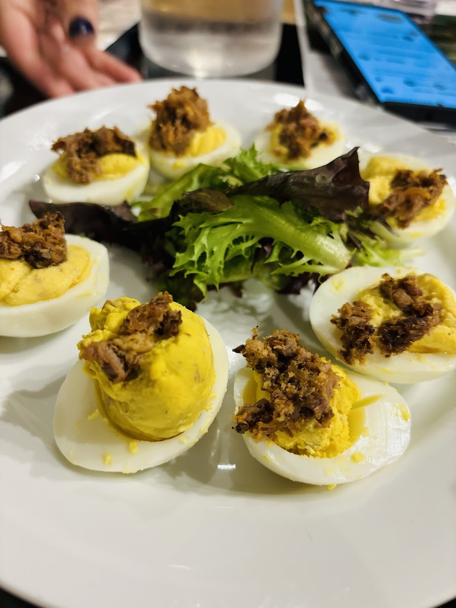 For a little something extra, the Doubled Smoked Deviled Eggs are an absolute treat. These eggs are smoky, creamy, and just the right amount of tangy, making them an ideal appetizer to kick off your meal.